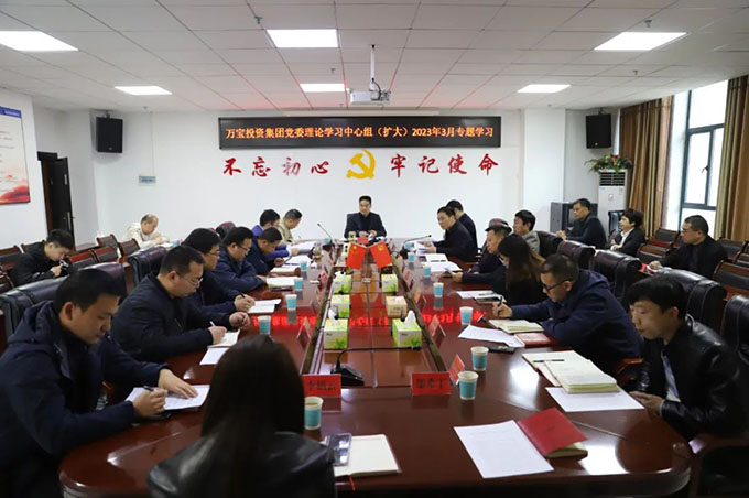 3月9日,萬寶投資集團黨委書記、董事長陽文林主持召開黨委理論學習中心組(擴大)2023年3月專題學習會議,黨委副書記、總經(jīng)理徐業(yè)波,黨委委員、副總經(jīng)理謝緯,黨委委員、紀委書記葛旭華,黨委委員易志高出席,全體主管及以上人員參加。