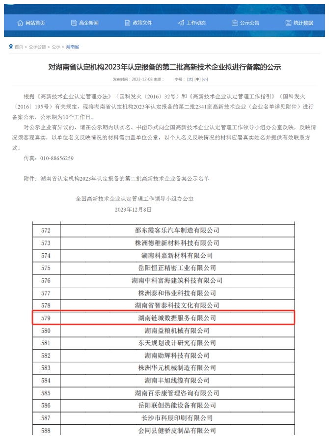 (子公司鏈城數(shù)據(jù)公司獲批國家級高新技術(shù)企業(yè))