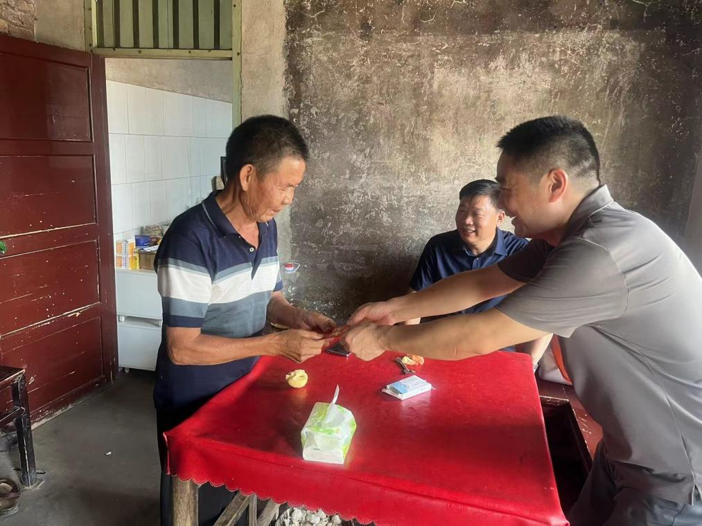 走訪完盧家村,陽文林一行馬不停蹄的趕往鄉(xiāng)村振興幫扶村—新化縣桑梓鎮(zhèn)大田村,考察集團公司今年在大田村的幫扶項目現(xiàn)場,走訪慰問結(jié)對幫扶監(jiān)測戶,并為每一個監(jiān)測戶送上慰問金。走訪結(jié)束后,陽文林一行與鎮(zhèn)、村負責人和幫扶工作隊座談,了解幫扶工作情況,為如何做好幫扶工作助力獻策。